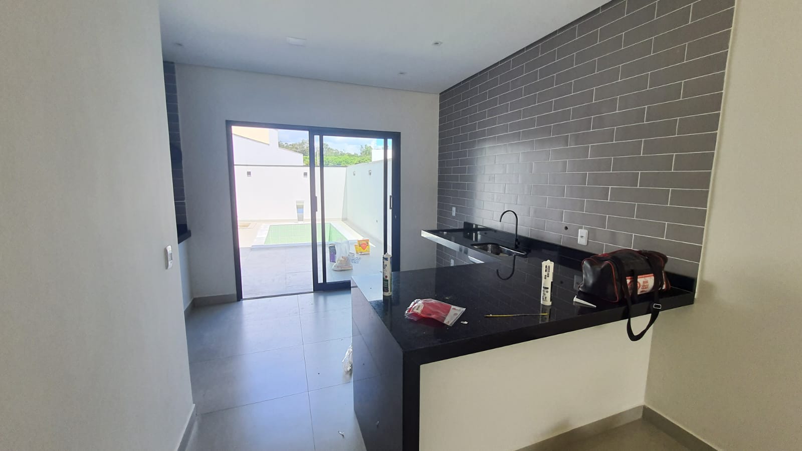 Cozinha acoplada com área gourmet;