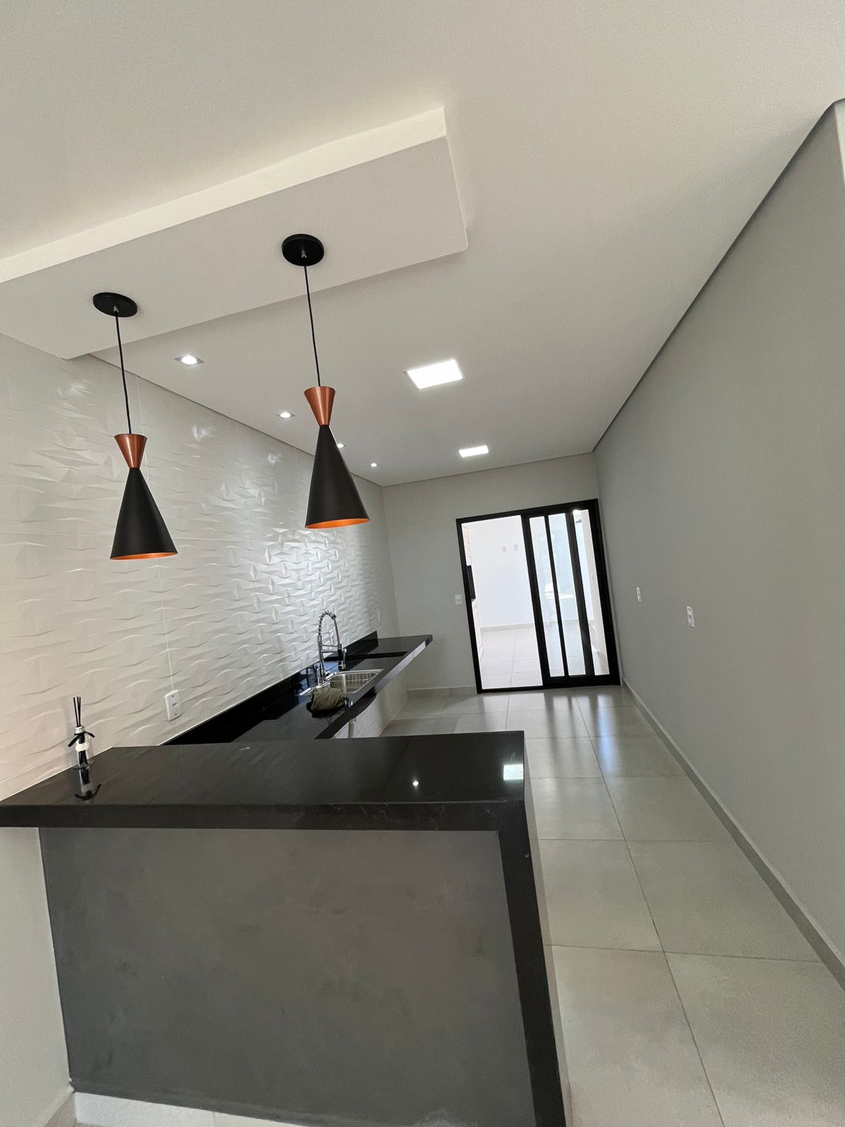 * Salas de estar e jantar em conceito aberto;